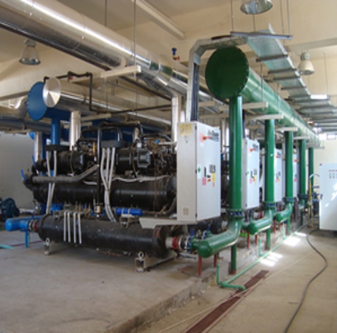 •Centralized cooling/heating plants (chillers, boilers, heat pumps).
