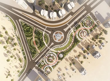 Project Summary: A major roundabout and surrounding landscape development. PLAN-TECH provided MEP services for lighting, fountain design, pumping systems, irrigation, and underground utilities coordination.